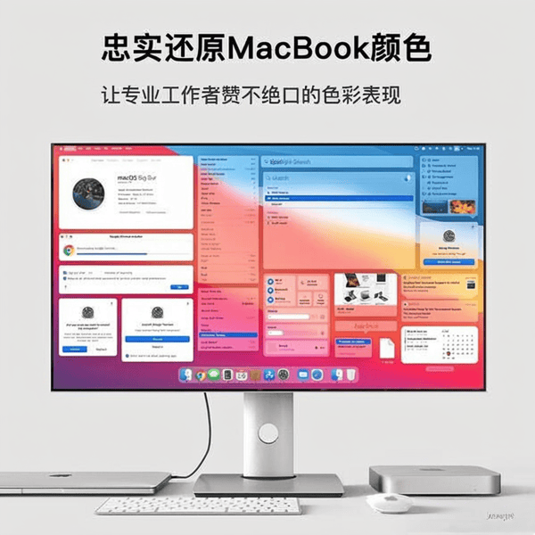 这款显示器被设计为适应多种工作场景,不仅满足色彩和画质的高要求,还能够适配苹果M1和M2芯片产品,带来完美的视觉体验。它的底座能够升降和旋转,方便用户根据需要调整屏幕高度和角度,提供无障碍的观看体验。无论是专业技术人员还是爱好者,这款显示器都能成为你完美的办公助手。